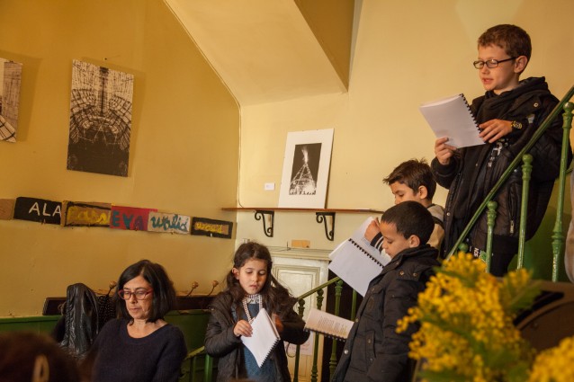 En février : lecture de trois contes sur la ville par des élèves de l’école Gaveau-Macé. Dans la journée chaque groupe de lecteurs se déplace dans les classes pour présenter sa lecture. Après l’école, les familles des lecteurs sont invitées à assister à la lecture des trois contes, autour d’un goûter au BarNabu.